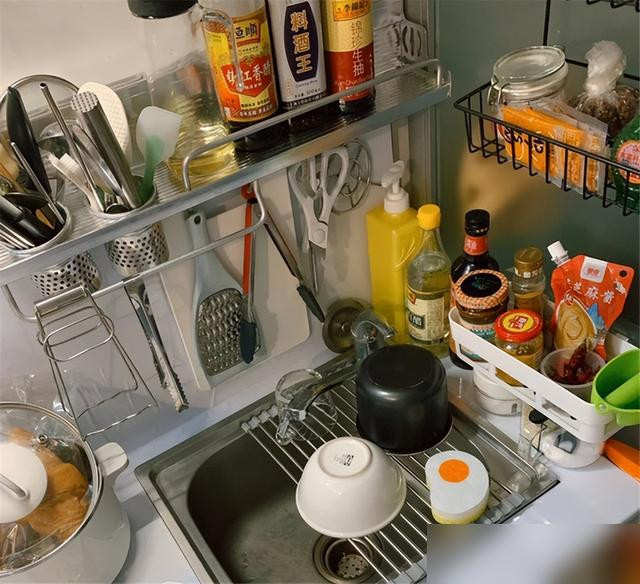 墙上挂个收纳架,洗衣机顶上当书桌用,都是被逼出来的巧劲儿。